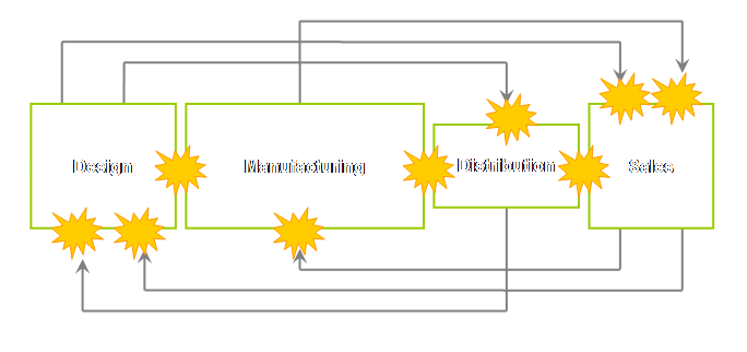jumps a boundary between functional or logistical or business units? Goldratt’s answer to this problem is to