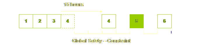 operations separated by local safety time buffers. Operations and buffers are drawn in