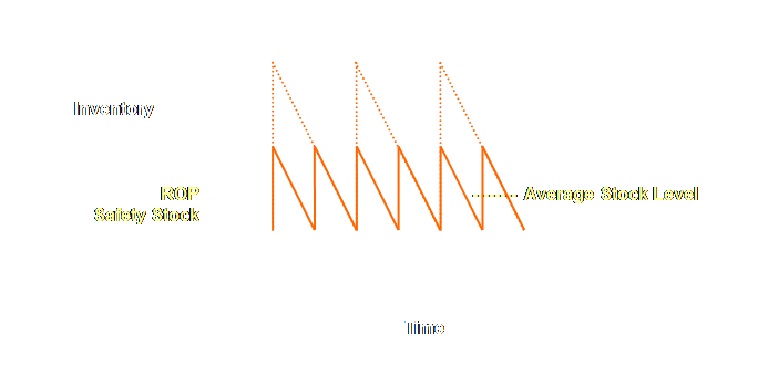 the inventory level decreases as the stock is drawn down for sales. At some stage a reorder point (ROP) is