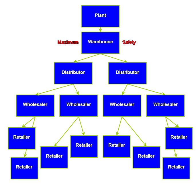 retailer, a wholesaler, and a plant.
